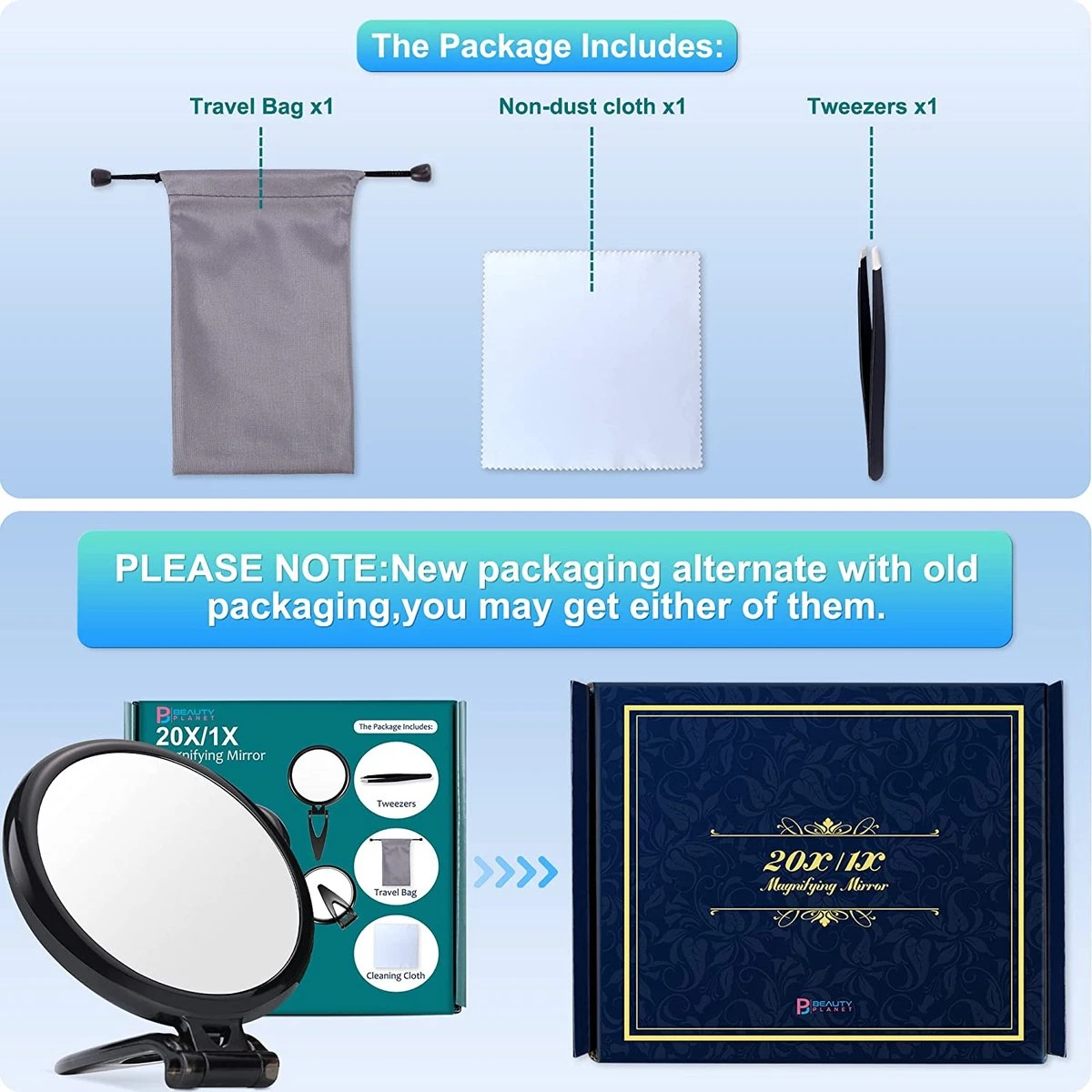 5 Inch, 20X Vergrootspiegel, Tweezijdige Spiegel, 20X/1X Vergroting, Opvouwbare Make-upspiegel Met Handheld/standaard, Gebruik Voor Make-up Toepassing, Pincet En Mee-eter/onzuiverheid Verwijdering