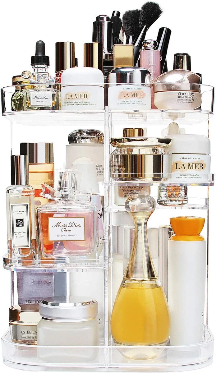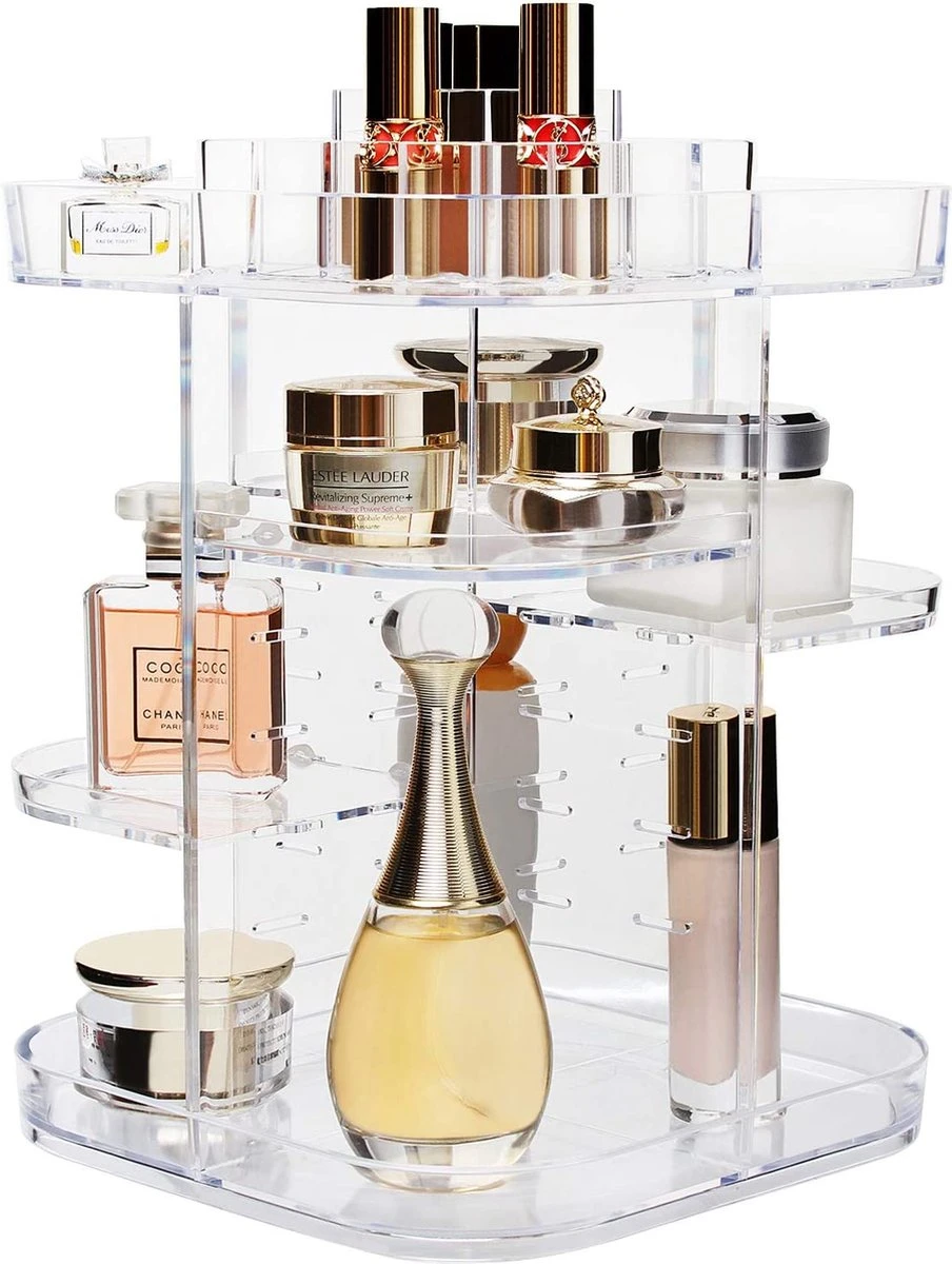 AMEITECH Make-uporganizer, Verstelbaar 360 Roterende Cosmetische Opslagcarrousel Draaiende Houder Opbergrek Met 5 Lagen Grote Capaciteit, Geweldig Voor Aanrecht Ijdelheid, Vierkant