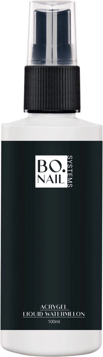 BO.NAIL BO.NAIL AcryGel Liquid Watermelon (100ml). BO. AcryGel Liquid Watermelon wordt gebruikt in combinatie met de BO. AcryGel Application Tool en geeft perfecte controle over de BO.. Productbeschrijving AcryGel Liquid Watermelon wordt gebruikt in combinatie met de BO. AcryGel Application Tool en geeft perfecte controle over de BO. AcryGel applicatie. Met de BO. AcryGel Liquid Watermelon is uw applicatie penseel vochtig en stelt u deze in staat om uw nagel perfect te styleren zonder dat de AcryGel in het applicatie penseel blijft plakken. Dit geeft je een mooi, glad oppervlak en vermindert de hoeveelheid vijlwerk die nodig is. De BO. AcryGel Liquid Watermelon moet in combinatie met de AcryGel gebruikt worden. Kenmerken & voordelen * Perfecte controle * Zorgt voor een soepele applicatie, waardoor u minder hoeft te vijlen * Geen residu op de applicatieborstel * Frisse watermeloengeur * Perfect voor het reinigen van uw applicatiepenseel Usage Step 1: Prepare the natural nail as usual. Step 2: Apply a thin layer of BO. Air Bond onto the surface of the natural nail. Step 3: Determine the size of the bead of BO. AcryGel that you need. Gently squeeze into the tube and cut with the BO. AcryGel Application Tool (Spatula). Step 4: Place the small bead of AcryGel on the nail. Dip the BO. AcryGel Application Tool (Brush) into BO. AcryGel Liquid Watermelon. Make sure the brush is damp, not completely wet. Gently spread the bead of AcryGel over the entire nail. Step 5: Curing time: 30 sec. LED / 60 sec. UV light. Step 6: Remove the sticky layer with the BO. UV Cleanser. Step 7: File the nail and finish with BO. Soakable No Wipe Top Gel.