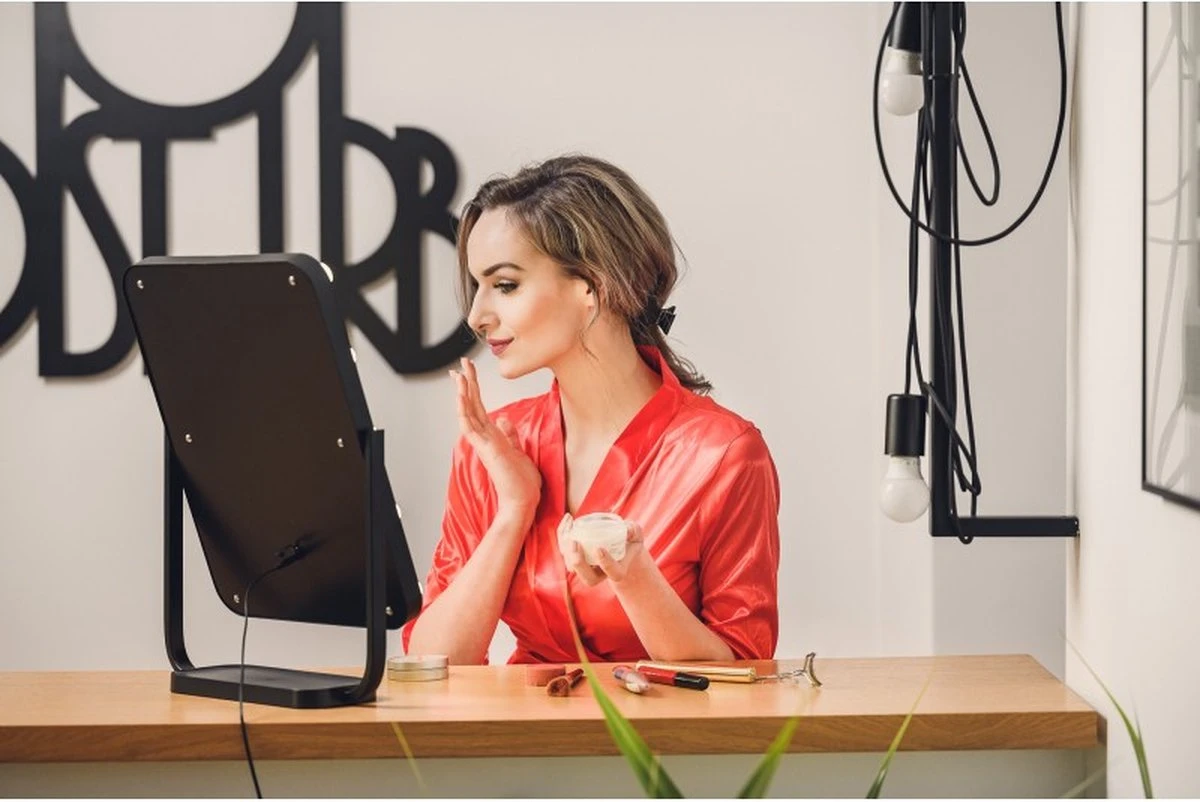 Het vermogen waarmee de in de spiegel ingebouwde LED’s schijnen, kan worden aangepast aan uw behoeften. Een hoog vermogen werkt goed op een zonnige dag, terwijl een lager vermogen goed werkt als het donker is of in een donkere kamer. Het perfect uitgebalanceerde licht verblindt de ogen niet, wat het opmaken veel gemakkelijker maakt.