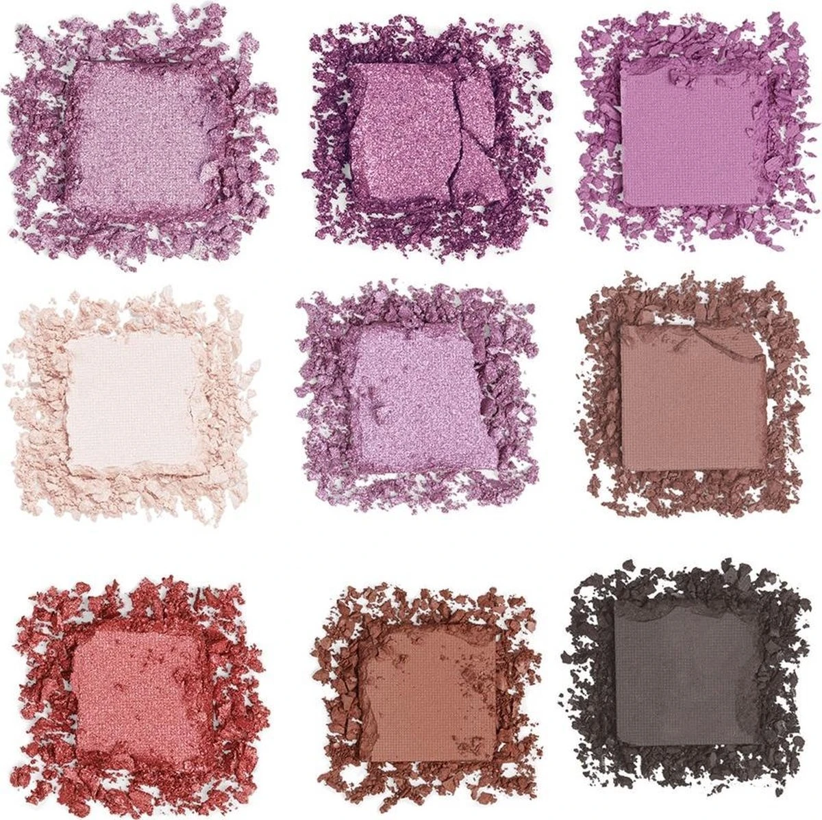 Het palette bevat 9 tinten oogschaduw, waarvan 4 matte en 5 shimmers. Een mix van warme tinten met pastel/lavendel tinten in een mooi en groot palette.