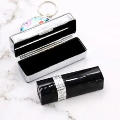Merkloos Lippenstift Houder – Lippenstiftdoosje – Lipstick Houder – Met Spiegel – Zilver – Metaal